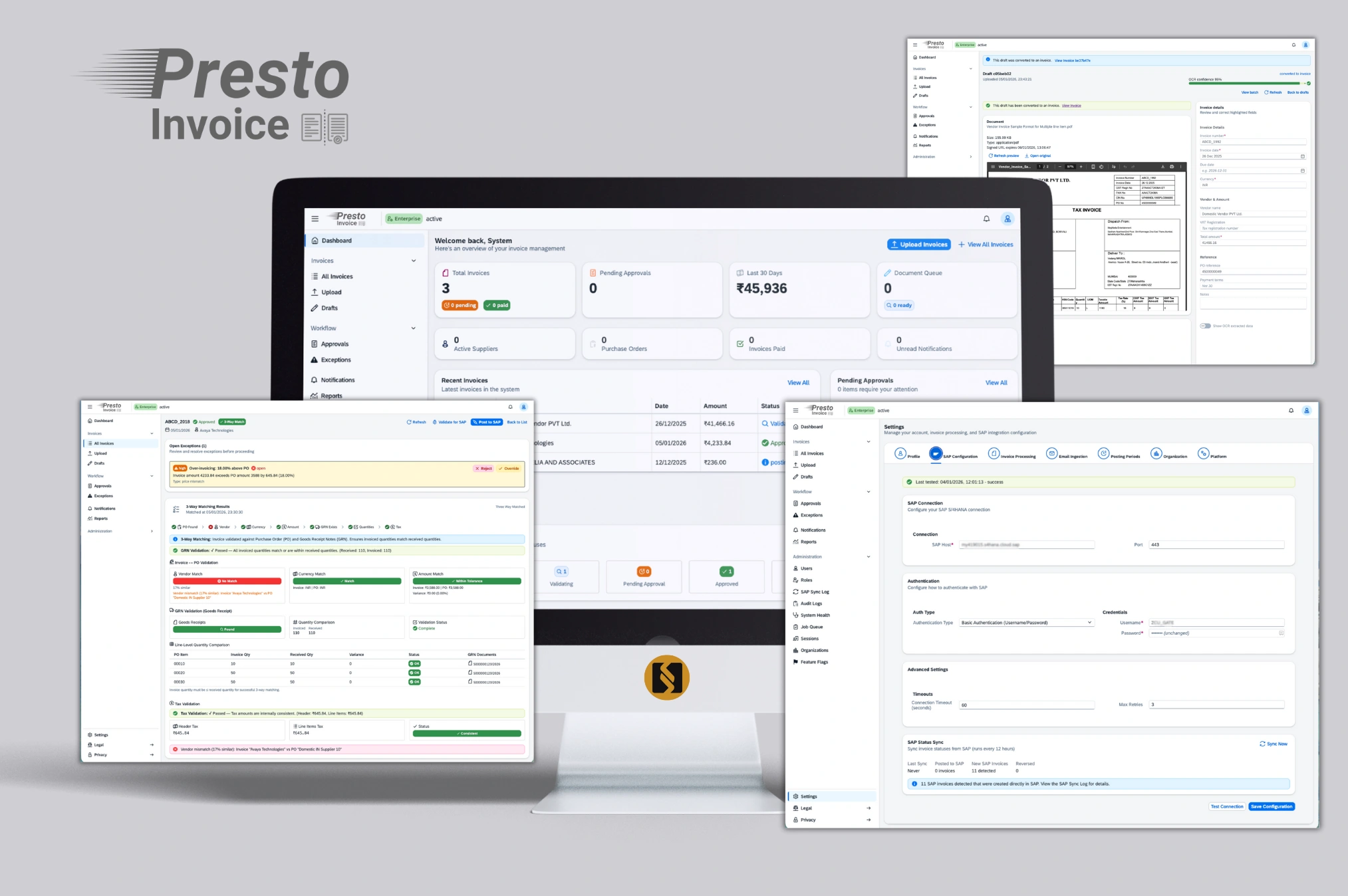 - End-to-End 2-Way and 3-Way Matching to streamline invoice processing and reduce manual effort and exceptions